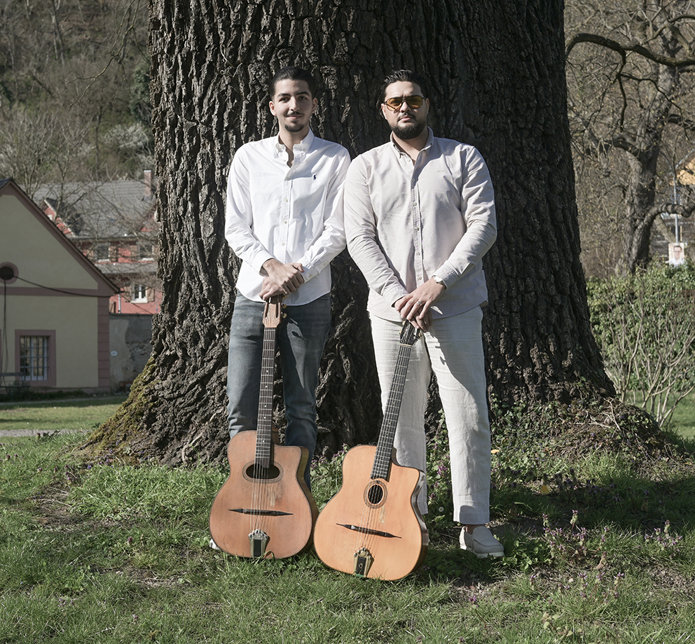 Das Nehemia Reinhardt Trio (ja, es ist ein Trio, auch wenn das Foto nur zwei der Musiker zeigt) widmet sich der zeitlosen Musik von Django Reinhardt und bringt den unverwechselbaren Klang des Gypsy-Jazz auf die Bühne. Selbst in den USA feierte Django Reinhardt mit seiner Musik große Erfolge und verfeinerte durch seine Spieltechnik den Sound des Jazz, der stark den europäischen Jazz beeinflussen sollte. Mit virtuosem Gitarrenspiel, rhythmischer Raffinesse und großer Spielfreude lassen die drei Musiker die Atmosphäre der Pariser Jazzclubs der 1930er Jahre lebendig werden.